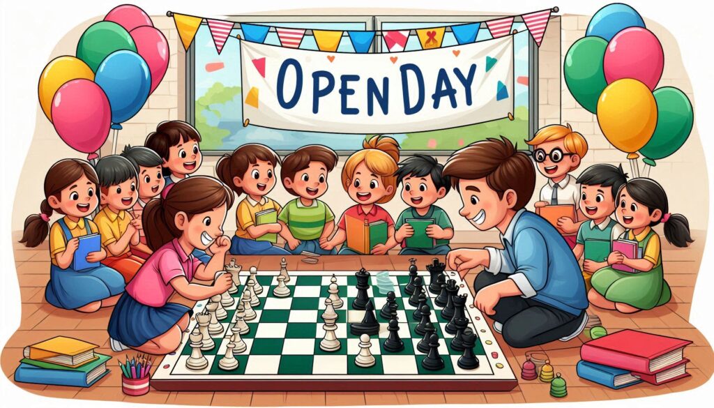 Op 14 december houden we dit jaar onze opendeurdag. Wie nog niet vertrouwd is met onze werking kan daar met ons kennismaken. Voor wie reeds schaaklessen bij ons volgt kan daar inschrijven voor het nieuwe seizoen dat begint op 1 februari 2025.